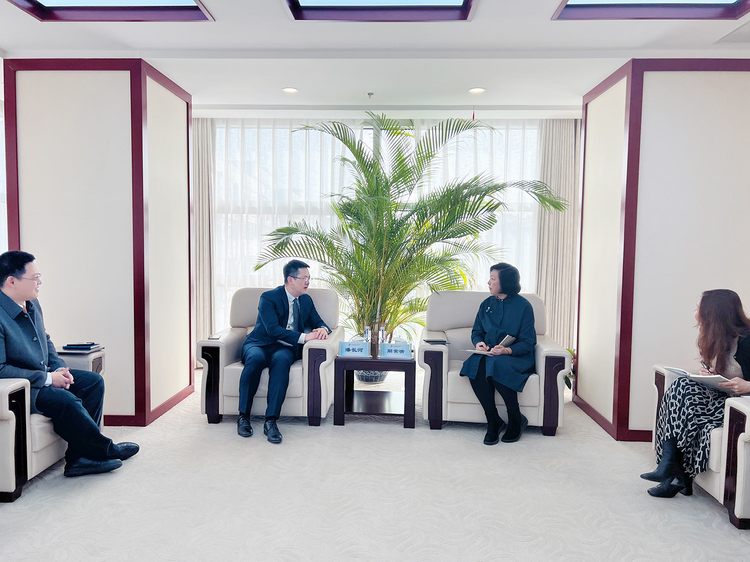 解常晴副院长对潘主任一行到访表示热烈欢迎,分享了贸仲在专业化建设和国际化发展方面的经验体会,并表示东莞是全国外贸大市,是粤港澳大湾区的重要节点城市,贸仲希望与东莞仲裁委员会加强交流,深化同大湾区法律服务业交流合作,推动建立共商、共建、共享的多元化纠纷解决机制,助力打造大湾区争议解决高地,为大湾区法治建设作出贡献。