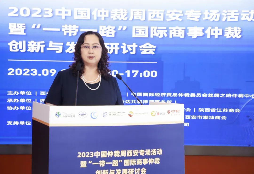 9月8日下午,2023中国仲裁周西安专场活动暨“一带一路”国际商事仲裁创新与发展研讨会成功举办。本次会议由中国国际经济贸易仲裁委员会丝绸之路仲裁中心(简称“贸仲丝路中心”)、西安市贸促会(西安国际商会)主办,西安投资控股有限公司、北京天达共和律师事务所承办,秦商总会、苏陕东西部合作发展促进会、西部企业家商会、陕西省江苏商会、陕西青年创业促进中心、西安市新生代企业家联谊会和西安市潮汕商会协办,北京银行股份有限公司西安分行、西安高科集团有限公司支持举办。西安市贸促会(西安国际商会)副会长张庚元、贸仲丝路中心副秘书长蒋红梅出席会议并致辞,贸仲丝路中心案件经办人余茜主持。