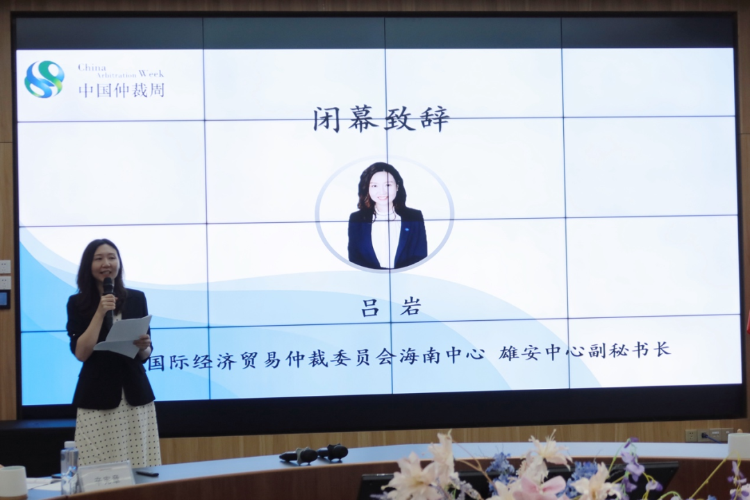 贸仲海南中心副秘书长吕岩女士为本次活动致闭幕辞。她指出,本次会议为助力海南自贸港完善“一站式”多元化国际商事纠纷解决机制、推动海南自贸港营造国际一流的营商环境提供了思路和方法,贸仲海南中心将继续充分继承和发挥贸仲60多年先进、成熟的争议解决经验和优势,为RCEP相关的商事主体提供国际一流的仲裁法律服务,助力海南打造面向RCEP国家的国际商事争议解决中心。
