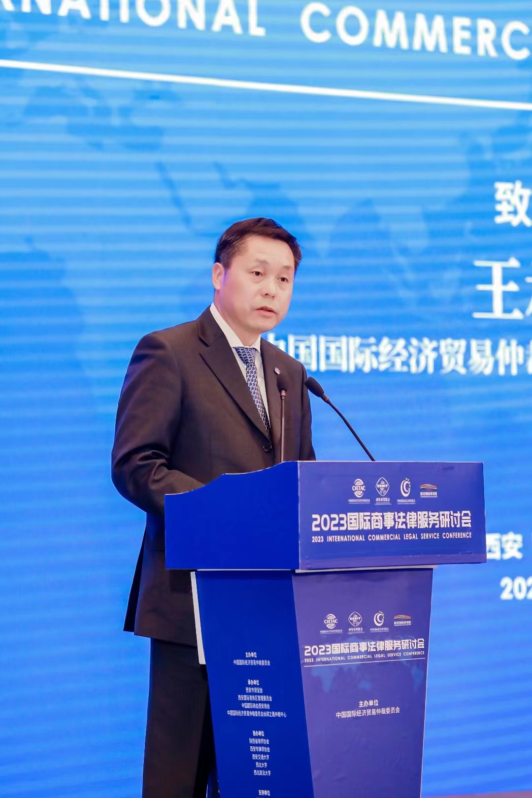 11月9日,由中国国际经济贸易仲裁委员会(简称“贸仲”)主办的2023国际商事法律服务研讨会在西安成功举办。贸仲副主任兼秘书长王承杰,西安市政协副主席张华俊,西安市中级人民法院党组书记、院长赵雷出席开幕式并致辞。