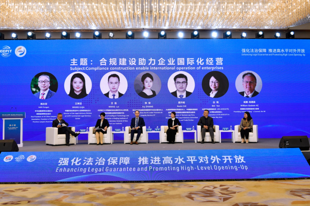 最高人民法院第六巡回法庭分党组副书记、副庭长,一级高级法官罗智勇,土耳其驻华大使馆首席商务参赞阿塔坎·奥兹德米尔,中国贸促会商法中心副主任张顺,中国政法大学中欧法学院欧方执行院长罗纳德·蒙塔古·西里,亚洲国际仲裁中心主席,亚洲多元争议解决研究院主席拿督桑德拉·拉铢,围绕论坛主题分别发表主旨演讲。在专题研讨环节,中华全国律师协会副会长、陕西省律师协会会长韩永安,中国贸促会商法中心法律顾问处处长王琳洁,北京理工大学智能科技法律研究中心研究员、新浪互联网法律研究院秘书长王磊,安永法证及诚信合规服务华北区主管合伙人张俊,中国国际贸易促进委员会经贸摩擦法律顾问委员会委员、大成律师事务所高级合伙人蔡开明,法国德尚律师事务所北京代表处代表、大湾区业务负责人白艳,英国国王枢密院御用大律师威廉·高德温,6位嘉宾围绕“合规建设助力企业国际化经营”展开热烈讨论。主旨演讲和专题研讨,为企业深入对接国际经贸规则,强化国际竞争力,搭建合规管理体系,用法治思维和法律武器解决国际经营中遇到的困难问题和实际需求提供了专业遵循意见。