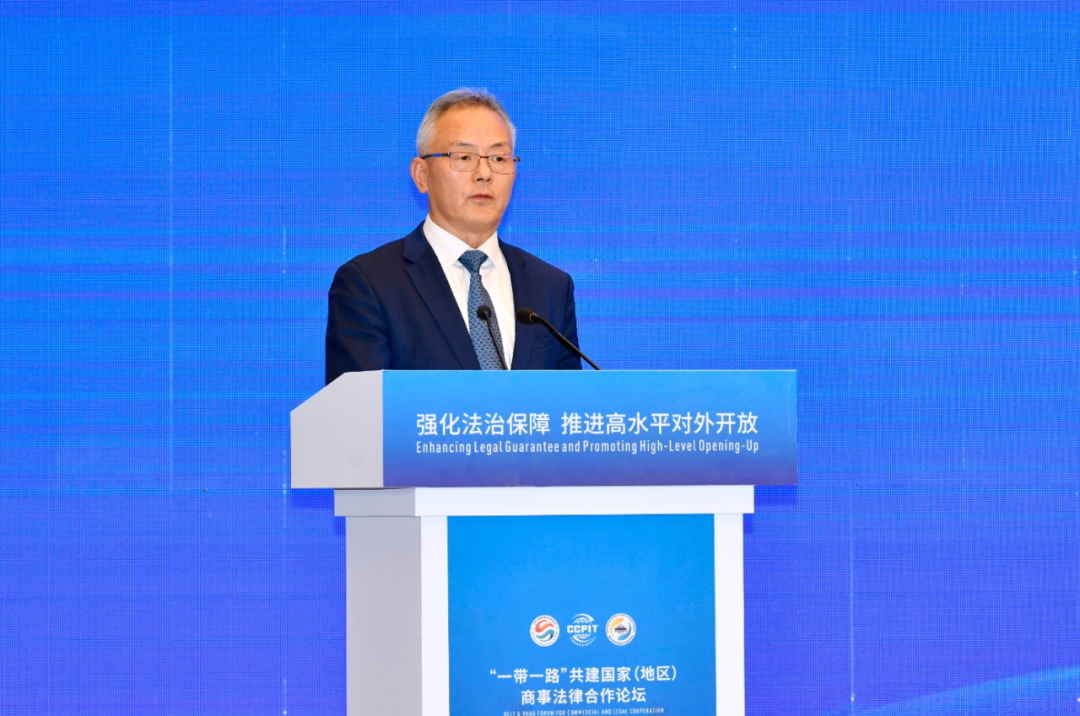 11月16日,“一带一路”共建国家(地区)商事法律合作论坛在西安成功举办。中国贸促会党组成员李庆霜、陕西省人民政府副省长戴彬彬出席活动并致辞,最高人民法院第六巡回法庭分党组副书记、副庭长、一级高级法官罗智勇,土耳其驻华大使馆首席商务参赞阿塔坎·奥兹德米尔,乌兹别克斯坦总统直属立法和法律政策研究所所长学术秘书拉苏列夫·阿卜杜勒阿齐兹·卡里莫维奇,中国政法大学中欧法学院欧方执行院长罗纳德·蒙塔古·西里,中国国际贸易促进委员会法律事务部副部长、国际商事争端预防与解决组织秘书长沈佩兰现场出席,亚洲国际仲裁中心主席、亚洲多元争议解决研究院主席拿督桑德拉·拉铢,英国国王枢密院御用大律师威廉·高德温线上参会。陕西省贸促会会长贾正兰主持。