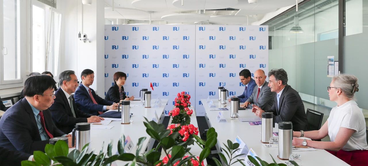 6月18日,中国贸促会会长任鸿斌在瑞士日内瓦会见国际道路运输联盟秘书长普雷托,双方围绕TIR单证册在华推广、清洁能源生产利用、绿色供应链发展、推动贸易投资便利化及链博会等议题深入交流。