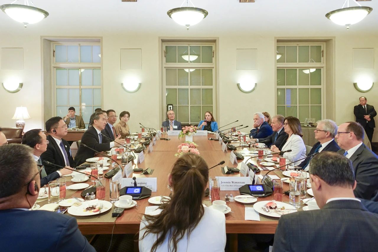 美国当地时间7月30日,中国贸促会会长任鸿斌在华盛顿会见美国商会会长苏珊娜·克拉克。