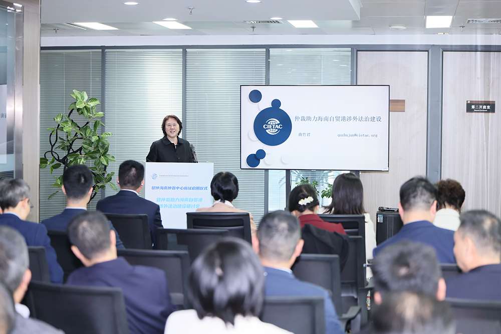 活动期间,贸仲海南中心举办了“仲裁助力海南自贸港涉外法治建设研讨会”。贸仲仲裁员、贸仲委员会工作处原处长曲竹君女士作了主题演讲,她就发挥贸仲品牌影响力及贸仲仲裁规则优势在助力海南自贸港涉外法治建设过程中的作用与各位嘉宾进行了交流,分享了贸仲丰富的国际仲裁创新实践案例,并介绍了贸仲《仲裁规则》在应用数字化程序、切实满足当事人争议解决需要、吸收借鉴国际仲裁最新发展成果等方面所作出的积极探索。