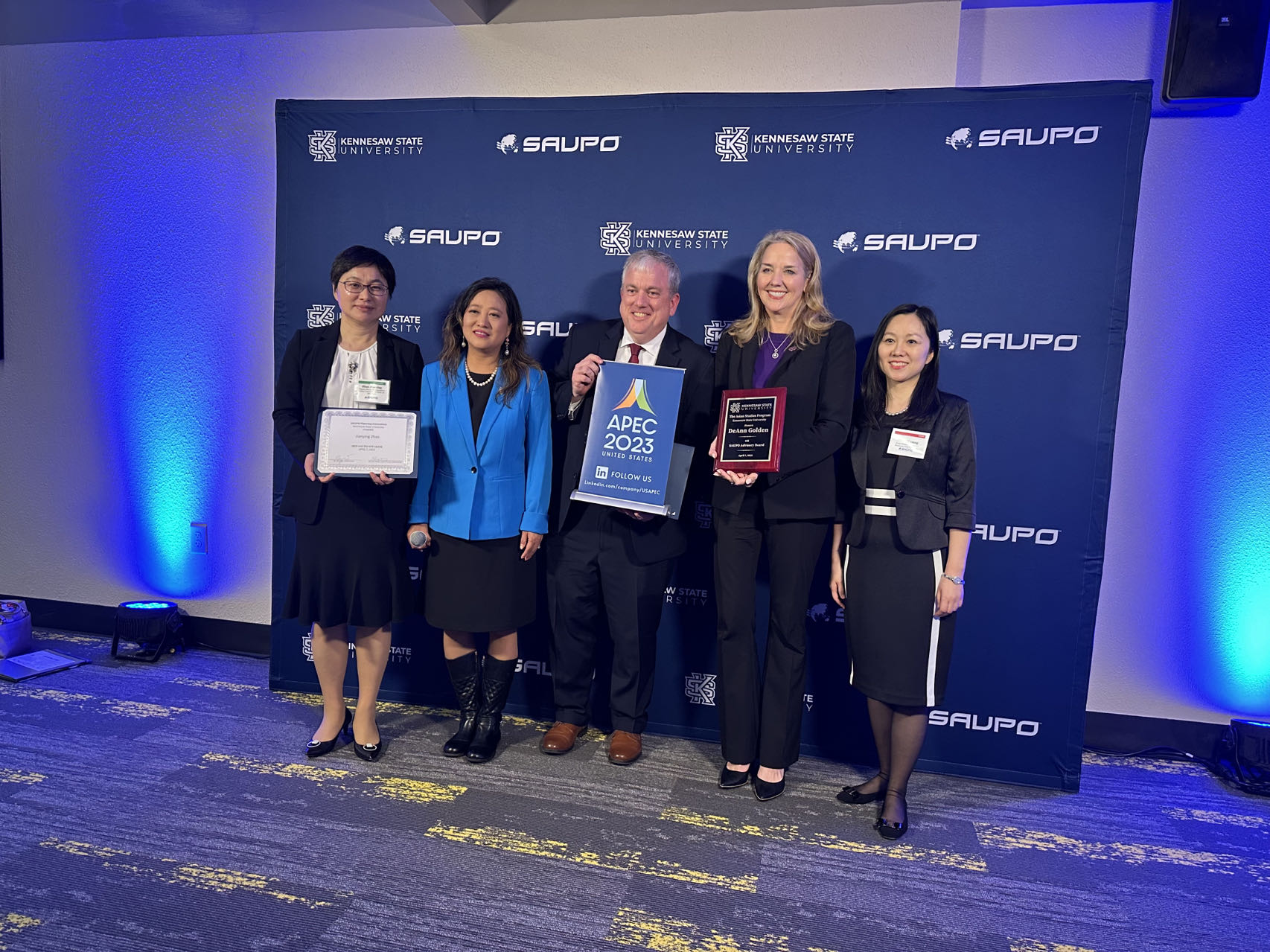 2023年4月7日,驻美国代表处副总代表赵剑英出席亚洲与美国合作机会论坛并发表主题演讲。亚洲与美国合作机会论坛(Symposium on ASIA-USA Partnership Opportunities, SAUPO)在佐治亚州政府经济发展署支持下由肯尼索州立大学主办,创立于2011年,是美国最大的亚洲商业大会。本届论坛于4月7日在佐治亚州肯尼索举行,论坛线下参加人数为350人,线上直播观众共700名,分别是来自美国和亚洲各国以及当地亚裔美国人社区的商业领袖、政策制定者、外交官、投资者和学者等。赵剑英和美国国务院亚太经济合作组织(APEC)高级官员马特·默里在论坛发表演讲。